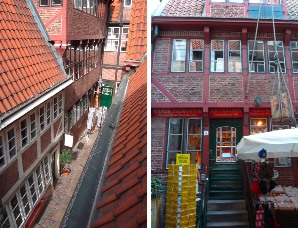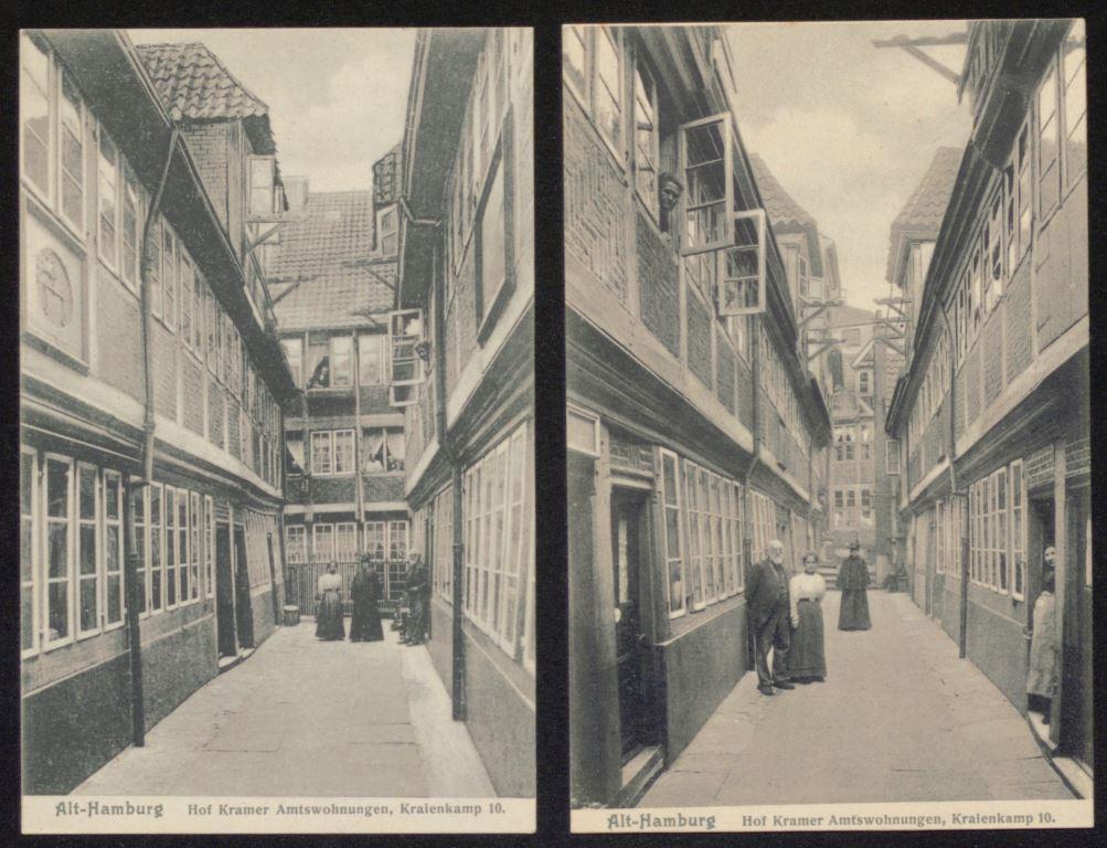 Das Bild, was sich den Besuchern und Besucherinnen nach Passieren der Tordurchfahrt bietet täuscht: Zu sehen ist vordergründig eine Hofanlage, 1676 vom Krameramt – so nannte sich die Zunft der Einzelhändler der Stadt – nach Kauf des Grundstücks für die Witwen der Zunftmitglieder erbaut. In zwei Zeilen, links und rechts entlang einer schmalen Gasse, entstanden damals die zweigeschossigen Bauten mit Kleinwohnungen.